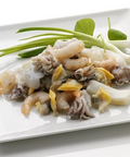 Morceaux d'anneaux de calamars blanchis : Pour une texture fondante et raffinée.
